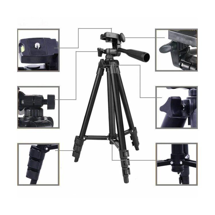 قرارگیری خوب موبایل و دوربین: سه پایه دوربین و موبایل 3120a به لطف طراحی خوب و حرفه ای میتواند دوربین و موبایل را به خوبی نگه دارد و ثبات لازم برای گرفتن عکسها را فراهم نماید. همچنین، استفاده از این مدل سه پایه کاملاً امن است چون به گریپ فوم ضد لغزش مجهز بوده و از افتادن دوربین در هنگام عکس برداری جلوگیری میکند. سه پایه دوربین و موبایل 3120a برای راحتی بیشتر اهرم رهاسازی سریع و قابلیت تنظیم خودکار دارد.