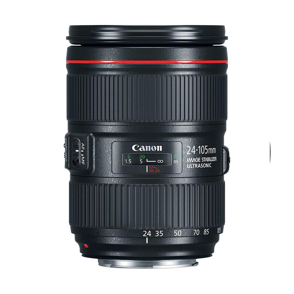 یک لرزشگیر stabilizer نوری تصویر در لنز کانن EF 24-105mm f/4L تعبیه شده است تا لرزشهای دوربین را تا حد ممکن کاهش دهد. این قابلیت از طریق 4 نقطه توقف سرعت شاتر حاصل میآید. این قابلیت در لنز، دوربین را برای کار کردن در شرایط کمنور و سرعت شاتر پایین توانا ساخته است.