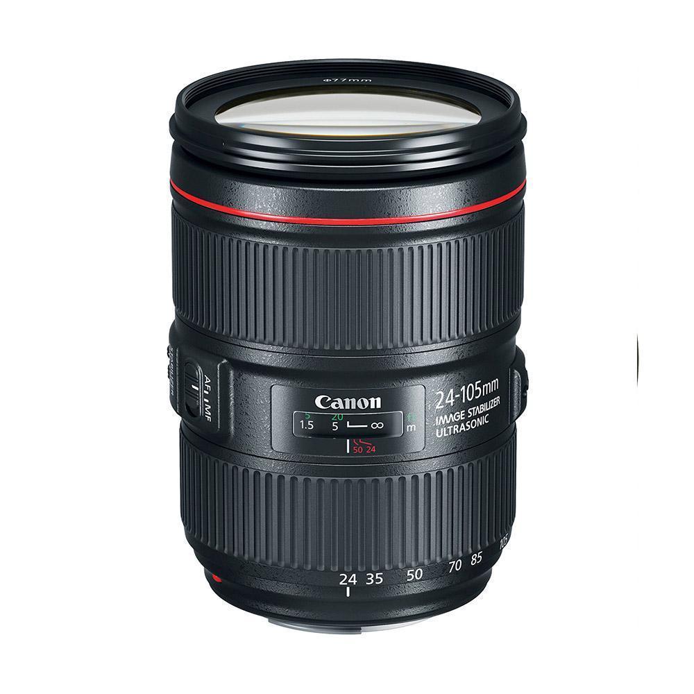 امروز قصد داریم به معرفی یکی از لنزهای زوم شرکت کانن بپردازیم. این شرکت در کنار دوربینهای DSLR خود، لنزهای باکیفیتی را نیز ارائه میکند که لنز کانن Canon EF 24-105mm f/4L IS II USM یکی از این لنزهاست. این لنز در تاریخ ۲۵ آگوست ۲۰۱۶ معرفی شد. همانطور که از نام این لنز مشخص است، فاصله کانونی آن در محدوده ۲۴ تا ۱۰۵ میلیمتر متغیر است. این محدوده فاصله کانونی ، لنز Canon EF 24-105mm f/4L IS II USM را در دسته لنزهای واید (wide)، معمولی (normal) و تلهفوتو (telephoto) قرار داده است. دیافراگم ۱۰ تیغه این لنز، در محدوده f/4 تا f/22 باز و بسته میشود. با توجه به این محدوده وسیع گشودگی دیافراگم، امکان تغییر میزان نور ورودی و نیز عمق میدان تصویر به راحتی برای شما میسر است. لنز Canon EF 24-105mm f/4L IS II USM با دارا بودن دهانه نوع EF ، قابلیت نصب بر روی طیف وسیعی از دوربینهای فول فریم و APS-C شرکت کانن را داراست. وزن این لنز ۷۹۵ گرم بوده و ابعاد آن در حدود ۱۱۸*۸۴ میلیمتر است. بدنه لنز مذکور به طور عمده از جنس فلز ساخته شده و همانند بسیاری از لنزهای شرکت کانن، در رنگ مشکی به بازار عرضه شده است. یکی از ویژگیهای بسیار مهم این لنز ، مقاومت آن در برابر رطوبت و گرد و غبار است که حمل و نگهداری لنز را بسیار آسان کرده است. در ساختار لنز Canon EF 24-105mm f/4L IS II USM ، تعداد ۱۷ عنصر اپتیکی در ۱۲ گروه استفاده شده است. از میان این ۱۷ المان میتوان به ۴ عنصر Aspherical ، پوشش فلورین و air ashere اشاره کرد. فوکوس اتوماتیک تعبیه شده در لنز Canon EF 24-105mm f/4L IS II USM ، با موتور قدرتمند التراسونیک به صورت خودکار بر روی سوژهها تمرکز میکند. همچنین قابلیت فوکوس دستی دائمی نیز در این لنز تعبیه شده است. حداقل فاصله فوکوس در این لنز ۴۵ سانتیمتر است. فیلترهای ۷۷ میلیمتری را میتوانید بر روی لنز Canon EF 24-105mm f/4L IS II USM نصب کنید. همچنین اگر تمایل به نصب هود بر روی لنز خود را دارید، میتوانید از هود های مدل EW-83M استفاده کنید. البته در جعبه این محصول، هود و کیف پوشاننده لنز توسط کارخانه سازنده قرار داده شده است.