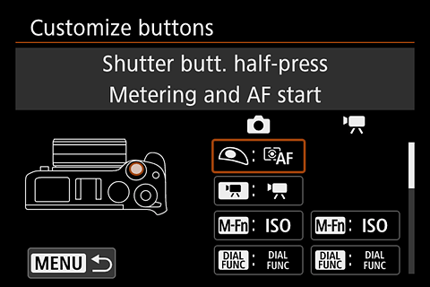 برای استفادهی بیشتر از دوربین و قابلیتهای فیلم برداری، با توجه به تعداد محدودی از کنترلرهای تعبیه شده روی بدنه، کانن به شما این امکان را میدهد که در صورت دلخواه، پیکربندی دکمههای قابل تنظیم را بطور جداگانه برای دو حالت تغییر دهید.