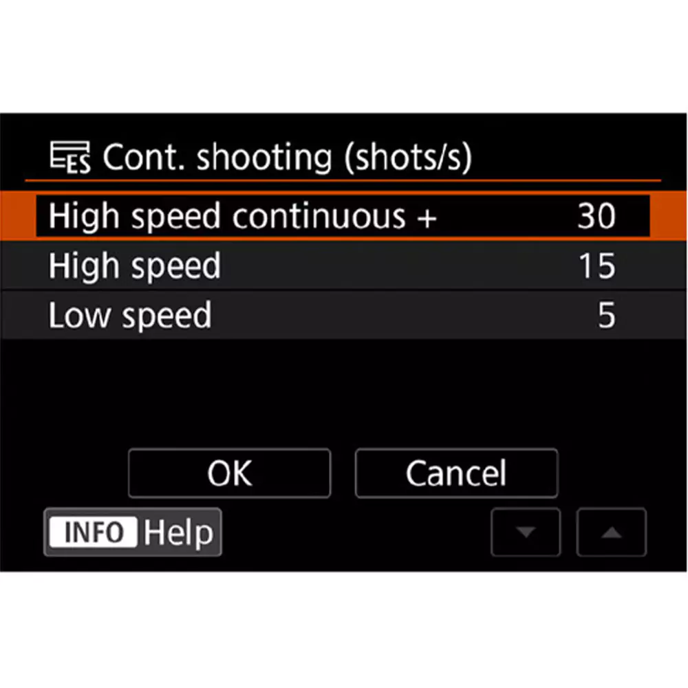 این ویژگی در عکاسی ورزشی، حیوانات یا هر نوع عکاسی که به لحظههای سریع نیاز دارد، بسیار مناسب است. به علاوه، این شاتر blackout-free است که به کاربر اجازه میدهد هنگام عکاسی متوالی تصویر لحظه به لحظه را مشاهده کند.