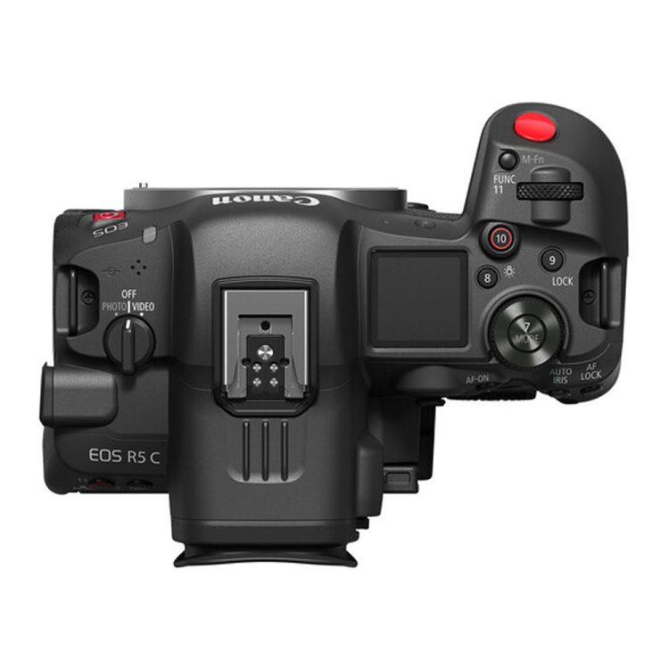 اولین چیزی که شاید چشم ما را جلب کند حرف C با رنگ قرمز و یک شاتر قرمز رنگ باشد. ابعاد این دوربین بدون آینه mirrorless حدوداً 142 در 101 در 111 میلیمتر است. به همراه باتری و دو کارت حافظه دوربین R5 C معادل 770 گرم است.