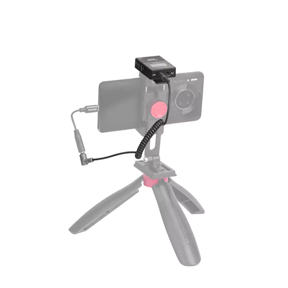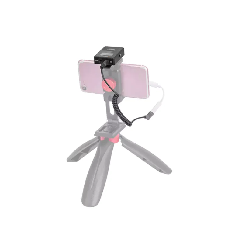 گیرنده، یک گیره کمری دارد که به عنوان آداپتور شو مانت برای دوربین نیز به کار میآید. اگر نگهدارنده گوشی نداشته باشید، میتوانید گیرنده را با گیره به گوشی خود وصل کنید. خروجیهای USB و 3.5 میلیمتری نیز برای اتصال به گوشی، کامپیوتر و دوربین مورد استفاده قرار میگیرند.