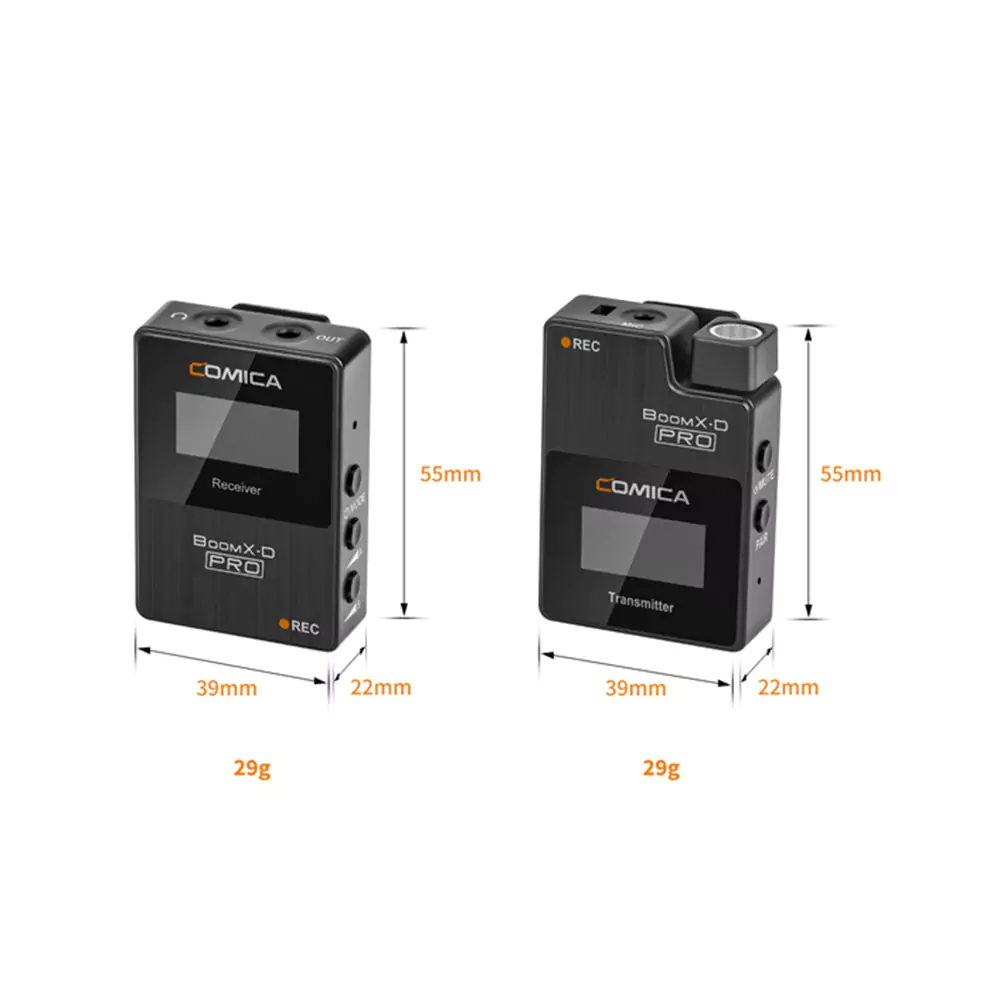 2 عددست میکروفون کامیکا Comica BoomX-D PRO D2، یک سیستم میکروفون بیسیم بسیار فشرده است که از یک گیرنده و دو فرستنده با میکروفون داخلی تشکیل شده است. علاوه بر آن، دو میکروفون یقه ای با ضدباد پشمی نیز به شما داده میشود. هر فرستنده، حافظه 8GB دارد که از دست نرفتن اطلاعات شما در طول ضبط را تضمین مینماید. این میکروفون بیسیم، از دستگاههای مختلف پشتیبانی میکند و وضوح صوتی بینظیر و قابلیت ضبط مونو یا استریو را در اختیار شما قرار میدهد. میکروفون BoomX-D PRO D2 را در ادامه، نقد و بررسی میکنیم. قطعاً پس از خواندن این صفحه، برای خرید ست میکروفن کامیکا Comica Audio BoomX-D PRO D2 دلیل کافی پیدا خواهید کرد. همراه ما باشید.