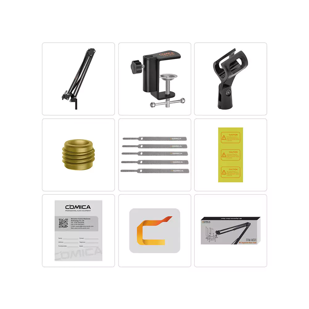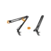 این لوازم جانبی میکروفون از جنس فلز با کیفیت بالا ساخته شده و دارای بازوهای مستقل است که میتواند تا ۱.۵ کیلوگرم وزن را تحمل کند. با استفاده از این پایه میتوانید میکروفون خود را در هر زاویهای تنظیم کنید و از آن برای ضبط صدا به راحتی بهره ببرید. طراحی آن به گونهای است که میتوانید در مواقع عدم استفاده، پایه را جمع کرده و میکروفون را به گوشه میز منتقل کنید.