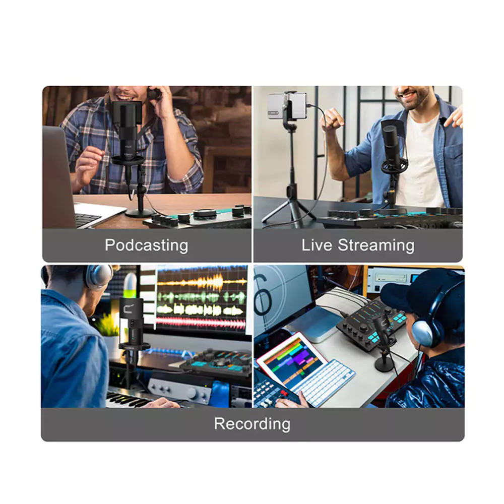 این میکروفون استودیویی با ویژگیهایی نظیر قابلیت حذف نویز محیط، بدنه فلزی مقاوم، و کپسول با کیفیت صدای استودیویی، گزینهای ایدهآل برای خوانندگی، استریم، ضبط پادکست و دیگر کاربردهای تولید محتوا است.