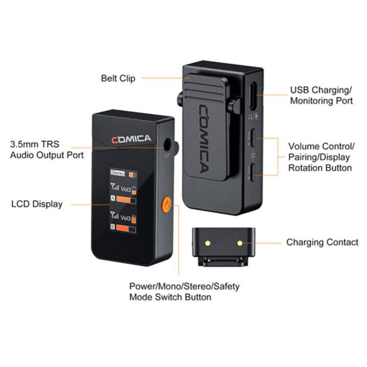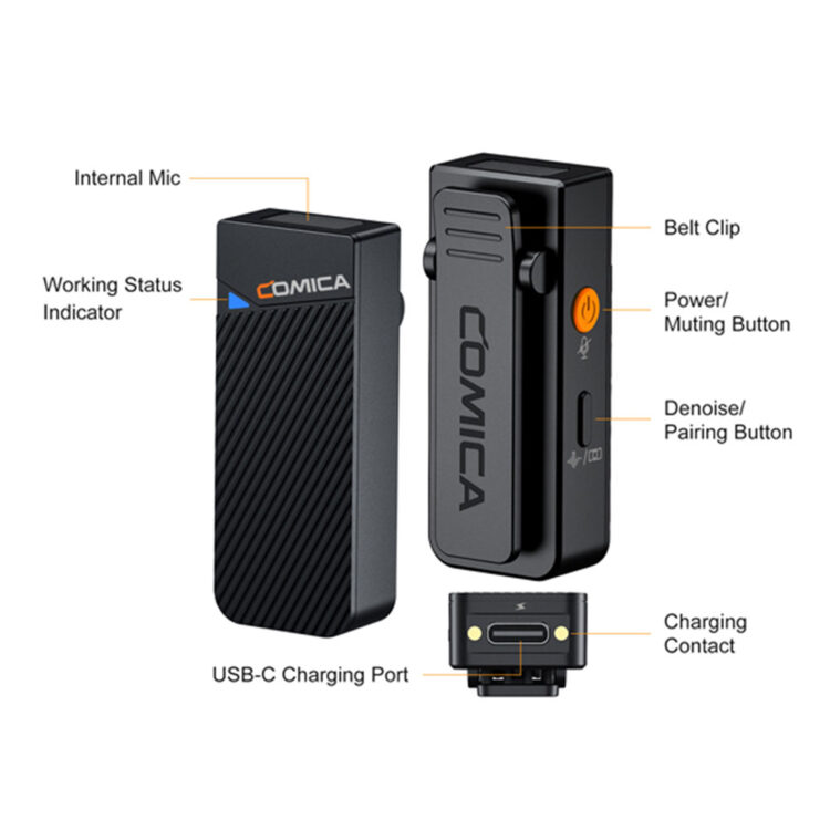 میکروفن بی سیم کامیکا Comica Vimo C1 یک میکروفون باکیفیت برای آن دسته از کاربرانی است که در زمینه تولید پادکست، تولید محتوای اینستاگرام و یوتیوب و ضبط ولاگ فعال هستند. این میکروفون متشکل از یک گیرنده و یک فرستنده بوده و به واسطه برخورداری از پورت USB Type-C میتواند همراه با انواع موبایل و دوربین مورد استفاده قرار گیرد. این دستگاه مجهز به یک صفحه نمایش رنگی بوده و از تکنولوژی نویزگیری بسیار قوی و قابلیت مانیتورینگ صدا همزمان برخوردار میباشد.