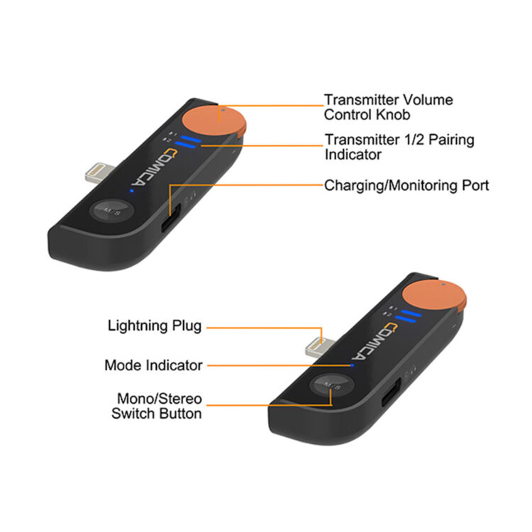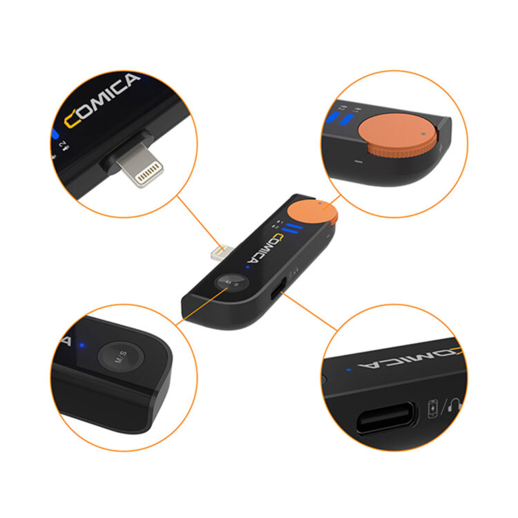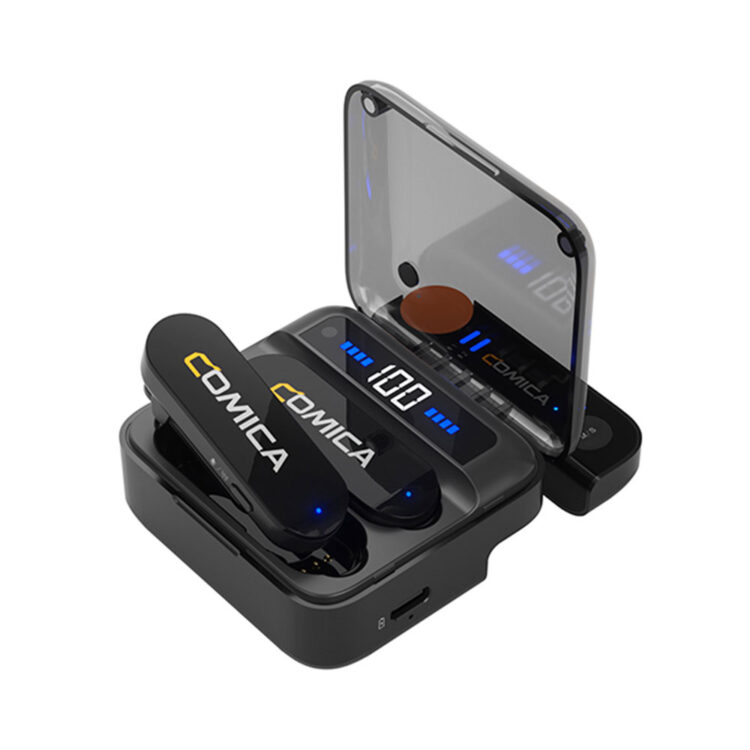 میکروفون بی سیم کامیکا COMICA Vimo S-MI یکی از باکیفیتترین میکروفونهای موجود در بازار بوده که میتواند برای تولید محتوای یوتیوب و اینستاگرام، ضبط پادکست و تولید ولاگ مورد استفاده قرار گیرد. این میکروفون متشکل از دو فرستنده و یک گیرنده بوده و برای گوشیها و آیپدهای آیفون طراحی شده است. برای میکروفون بی سیم کامیکا COMICA Vimo S-MI از تکنولوژی نویزگیری بسیار قوی استفاده شده و امکان مانیتورینگ صدا همزمان با شارژ دستگاه نیز برای آن در نظر گرفته شده است. منبع تغذیه این میکروفون را یک باتری داخلی قابل شارژ تشکیل داده که پس از هر بار شارژ کامل میتواند تا 15 ساعت شارژدهی داشته باشد. شارژ این میکروفون از طریق کیس شارژ همراه محصول صورت میگیرد. برای شارژ کیس شارژ نیز میتوان از شارژرهای گوشی استفاده کرد.