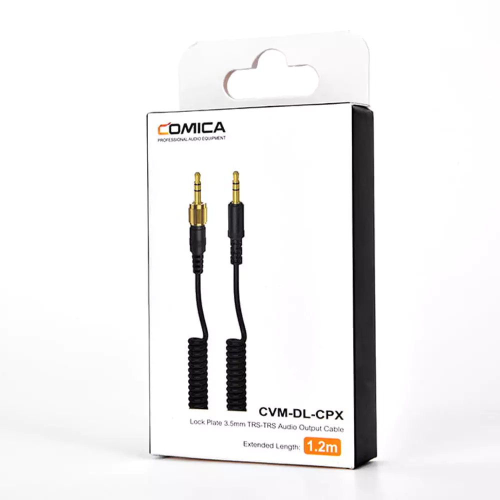کابل کامیکا CVM-DL-CPX دارای دو سر کانکتور TRS 3.5mm نری است که برای انتقال صدای میکروفون به دوربینها مناسب است. طول کابل 120 سانتیمتر است و به همراه “Cable Locker” برای جلوگیری از گره خوردگی و سیم فنری طراحی شده که امکان کنترل طول سیم و جلوگیری از کشیدگی یا شل بودن را فراهم میکند.