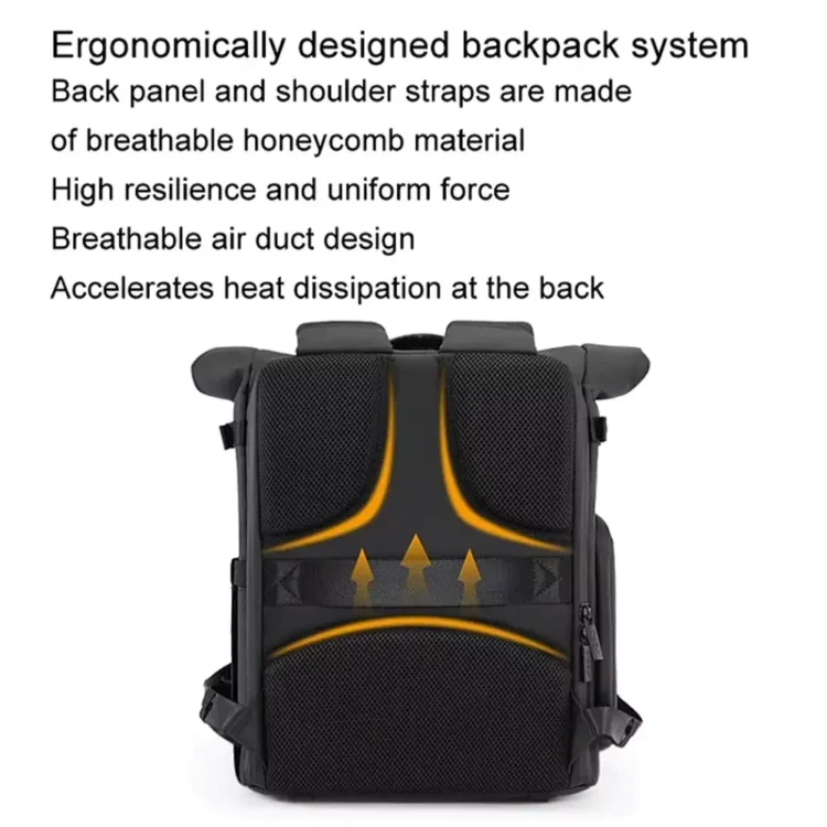 کوله پشتی Cwatcun D113 با ابعاد 36.5 × 31 × 16.5 سانتیمتر، طراحی ارگونومیک و ویژگیهای حرفهای خود آن را از سایر کولهها متمایز میکند. این کیف دوربین دارای پنل پشتی و بندهای شانه مشبک و تنفسی است که فشار را یکنواخت توزیع کرده و جریان هوا را تسهیل میکند.