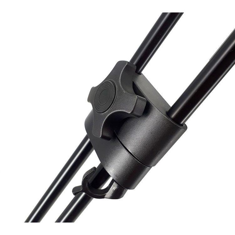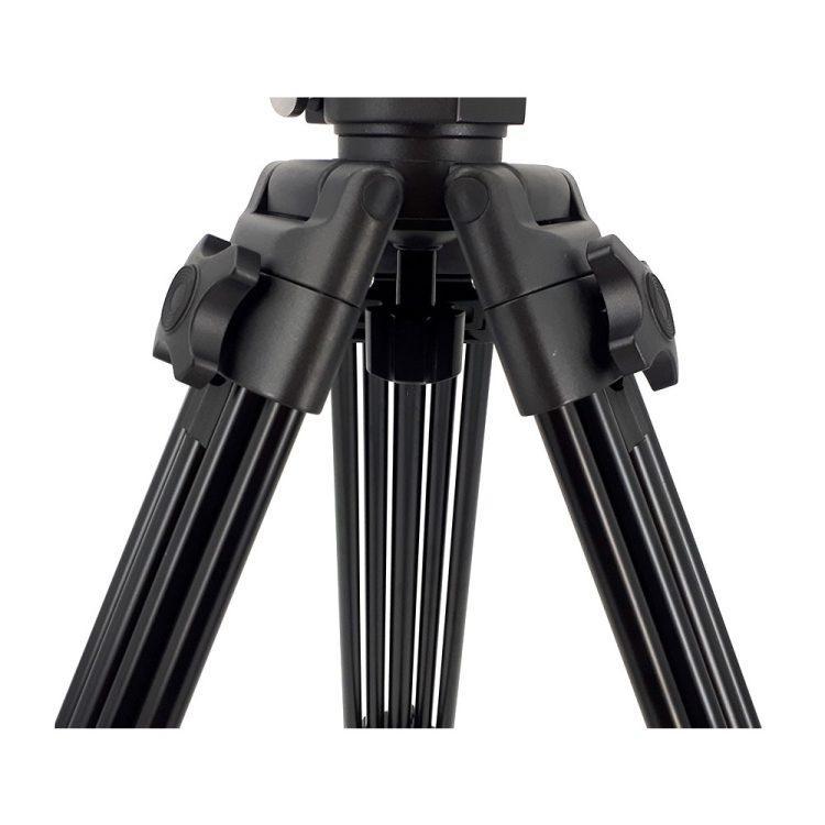 پیچ تنظیم ارتفاع از جنس پلاستیک سیلیکون با کیفیت است و به رنگ مشکی روی این سه پایه حرفهای فیلمبرداری سوار شده است. در قسمت مرکزی پایهها یک پیج وجود دارد که میتواند به عنوان محل قرار دادن کیف و دیگر وسایل شما عمل کند و استحکام سه پایه را در زمان شرایط نامناسب جوی بیشتر کند.