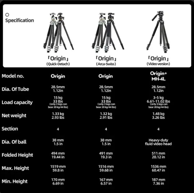 | سه پایه جدید | | نوع کاربرد | عکاسی | | حداقل ارتفاع | 17 سانتیمتر | | حداکثر ارتفاع | 151.9 سانتیمتر | | تعداد قطعات پایه | 4 | | نوع هد | Arca-Swiss, Quick-Detach, بال هد | | نوع قفل پایه ها | گیره ای |