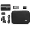 در نهایت باید به این موضوع اشاره کرد که بسته بندی این محصول شامل چه اقلامی میشود؟ کیف ضد ضربه، هلدر چتر، کابل شارژ، باتری و شارژر و پایه شارژ اقلامی هستند که در بسته بندی آن وجود دارند.