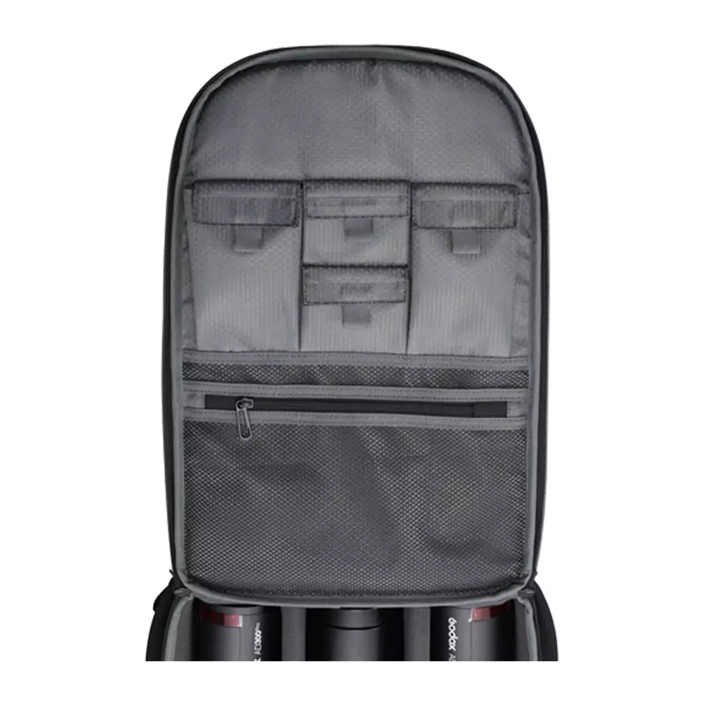 کیف کوله پشتی Godox CB20 با طراحی مقاوم و مواد نایلونی لایهدار از تجهیزات شما در برابر سایش و فشار محافظت میکند. فضای داخلی آن برای نظم دهی فلاشها، دوربینها و لوازم جانبی مناسب است. علاوه بر این، جیب لپتاپ 15 اینچی زیپدار، آن را برای حمل لپتاپ نیز مناسب میکند.