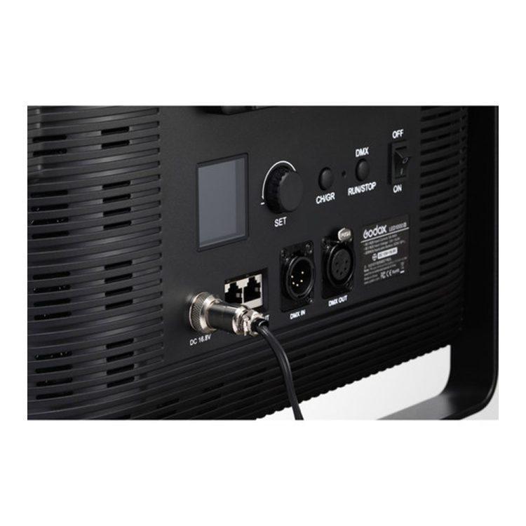 این نور ویدید برای خروجی تا 4800 لوکس در 3.3 و 4200K، لوکس در 3.3 و 3300K و 2600 لوکس در 3.3 و 5600K درجهبندی شده است. کشیدن حداکثر 70 وات نیرو در حین استفاده که یوغی با گیرنده پایه چراغ استاندارد و دکمه قفل از ویدیولایت گودکس Godox LED 1000Bi پشتیبانی میکند و طراحی آن دارای یک شکاف فیلتر داخلی برای دیفیوزر موجود در آن است. در حالی که یک آداپتور برق متناوب برای استفاده در استودیو ارائه شده است. کنترل از راه دور به دو باتری BP-L ولت AAA نیاز دارد.