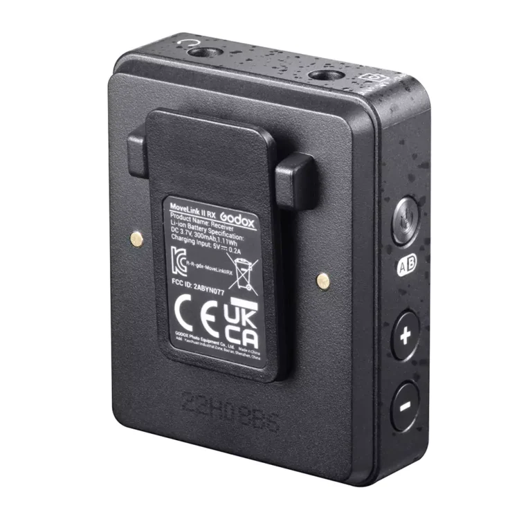 - ظرفیت باتری: باتریهای قابل شارژ داخلی میکروفون Godox MoveLink II M1 عمر طولانی دارند، اما برای جلسات طولانیتر بهتر است همیشه یک شارژر همراه داشته باشید تا از قطع شدن ناگهانی میکروفون جلوگیری کنید.