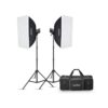 در کنار مونولایتها شاهد 2 عدد سافت باکس 60 در 90 سانتیمتری هستیم. دو عدد سه پایه هم برای هر فلاش مشاهده میشود که 190 سانتیمتر ارتفاع میگیرند. سرهای فلاش با یک درپوش پلاستیکی مقاوم محافظت میشود.