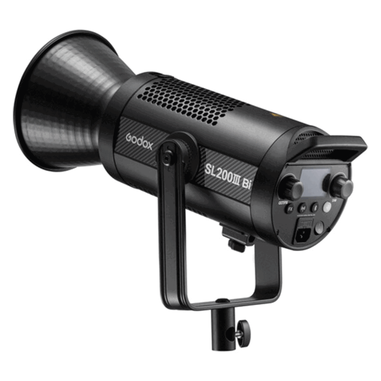 Godox SL200IIIBI Bi-Color LED Monolight بر روی یک پایه قابل چرخش تعبیه شده است که امکان چرخش 360 درجه را دارد. این ویژگی به همراه 9 جلوه ویژه در نظر گرفته شده برای این محصول امکان نورپردازیهای مختلف در زوایای گوناگون را فراهم میکند.