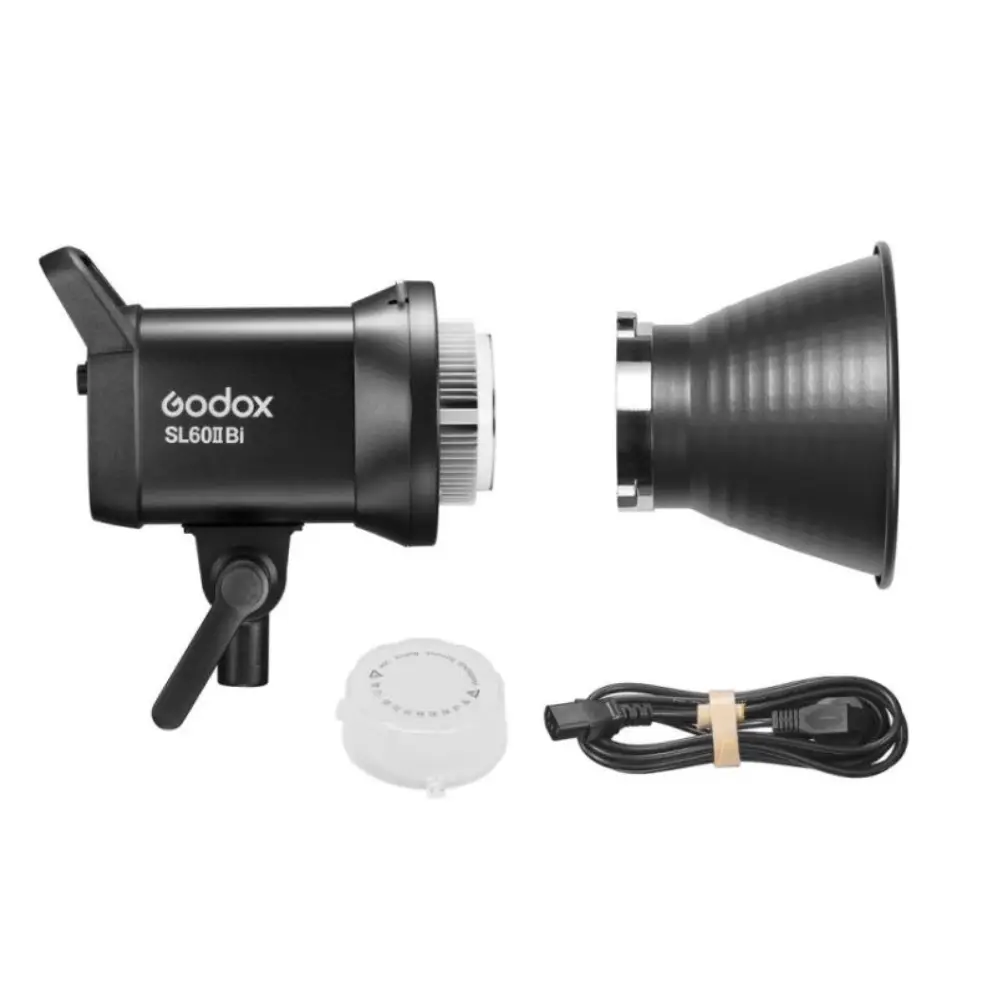 - اقلام همراه: ویدیو لایت گودکس Godox SL60IIBI Bi-Color LED Video Light/کابل برق/کاسه رفلکتور