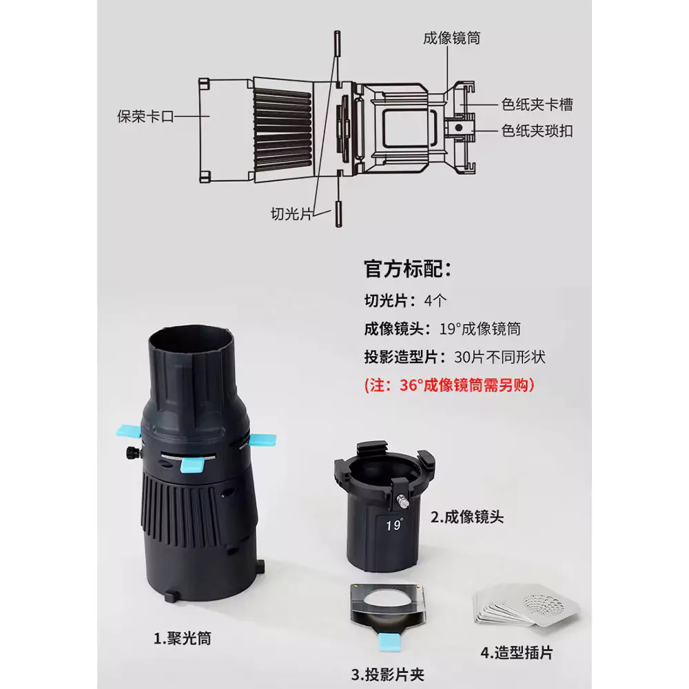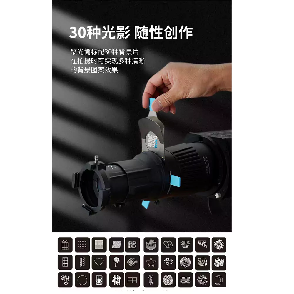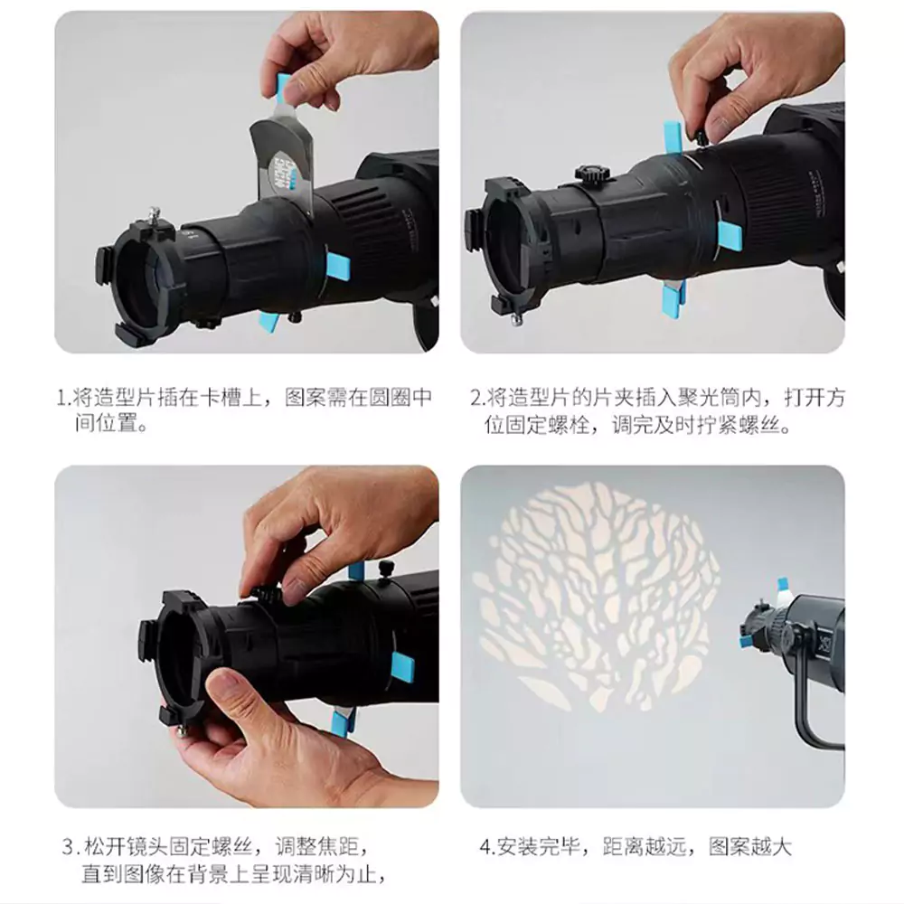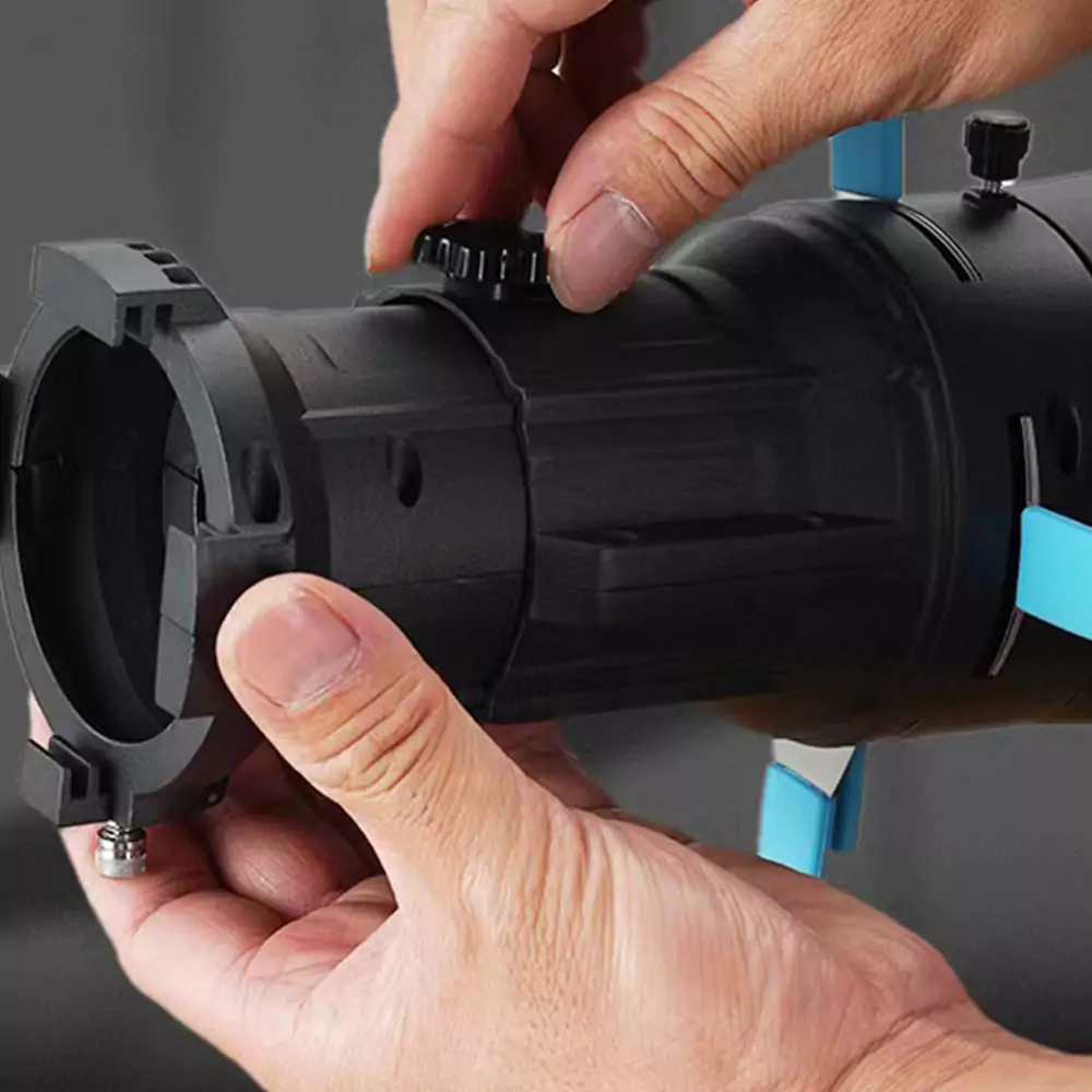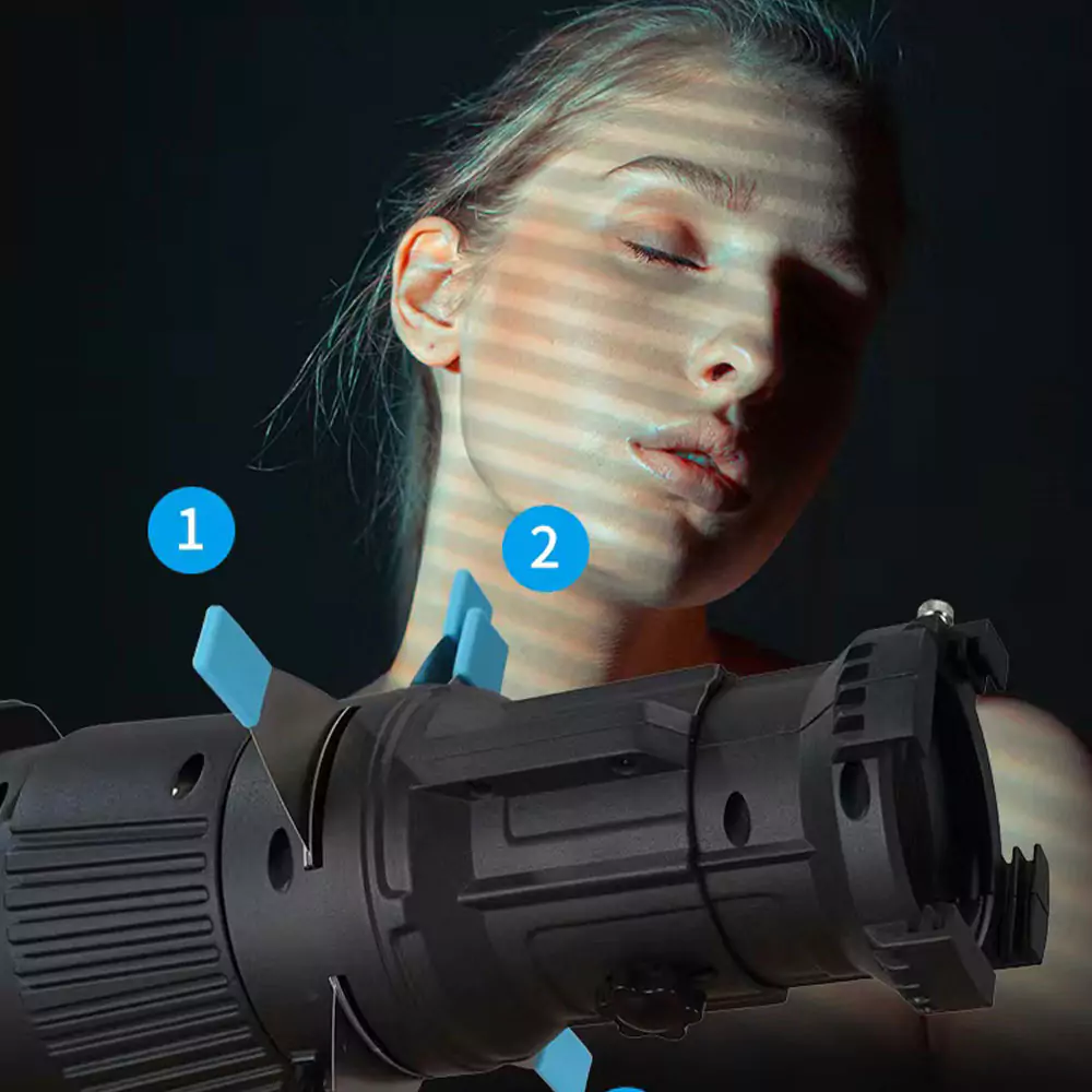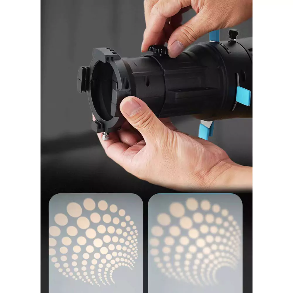 Golden Eagle Snoot دارای دیافراگم لنز قابل تنظیم است که به شما اجازه میدهد نور را به شکلی دقیق و با لبههای تیز کنترل کنید. این محصول به همراه سه فیلتر رنگی RGB عرضه میشود که امکان ایجاد جلوههای رنگی متنوع را فراهم میکند. همچنین، با وجود 30 عدد گوبو فلزی همراه آن، میتوانید اشکال نوری خلاقانهای را روی سوژه یا پسزمینه ایجاد کنید. این ویژگی، اسنوت لنزدار گلدن ایگل را به گزینهای ایدهآل برای عکاسان تبلیغاتی و پرتره تبدیل کرده است.