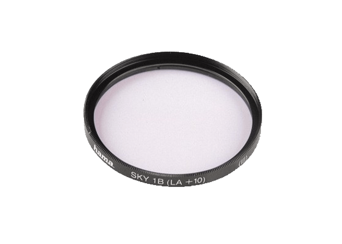 فیلتر لنز برای جلوگیری از ایجاد هر گونه خراش و یا شکستگی در المان جلویی لنز و وارد شدن هر گونه جسم خارجی اعم از ذرات گرد و غبار یا قطرات آب بر روی لنز نصب میشود. فیلترهای لنز از نظر شکل بر دو نوع اند: دایرهای و مربعی. فیلتر دایرهای بر روی المان جلویی لنز به صورت مستقیم قرار میگیرد و در مواقعی خرید آن مقرون به صرفه است که اندازهی دهانهی لنزهای شما، تنوع کمی داشته باشد و با خریدن یک فیلتر، بتوانید آن را بر روی چندین لنز که قطر دهانهی یکسانی دارند، استفاده کنید. همچنین اگر به صورت همیشگی بر روی لنز خود فیلتر نصب کنید، تمیز کردن آن راحتتر میشود. تمیز کردن لنز، مخصوصا در مواقعی که المان جلویی لنز شما محدب است، کار بسیار سختی است. استفاده از فیلتر اسکای لایت هنگامی که سوژه در سایه و آسمان صاف و بدون ابر و یا در منطقهای برفی یا ساحلی باشد، توصیه میشود و در این مواقع به علت کاهش اثر اشعهی فرابنفش و در نتیجه کاهش تن رنگی آبی یا خاکستری، باعث بهبود کیفیت عکس میشود. فیلتر اسکای لایت در دو نوع ۱A و ۱B عرضه میشود که نوع ۱A، تنها به اصلاح تون رنگی آبی میپردازد، اما نوع ۱B، کمی تون رنگی صورتی به تصویر اضافه میکند، تا کلوین رنگها افزایش پیدا کند و عکس، رنگهایی گرمتر بگیرد.