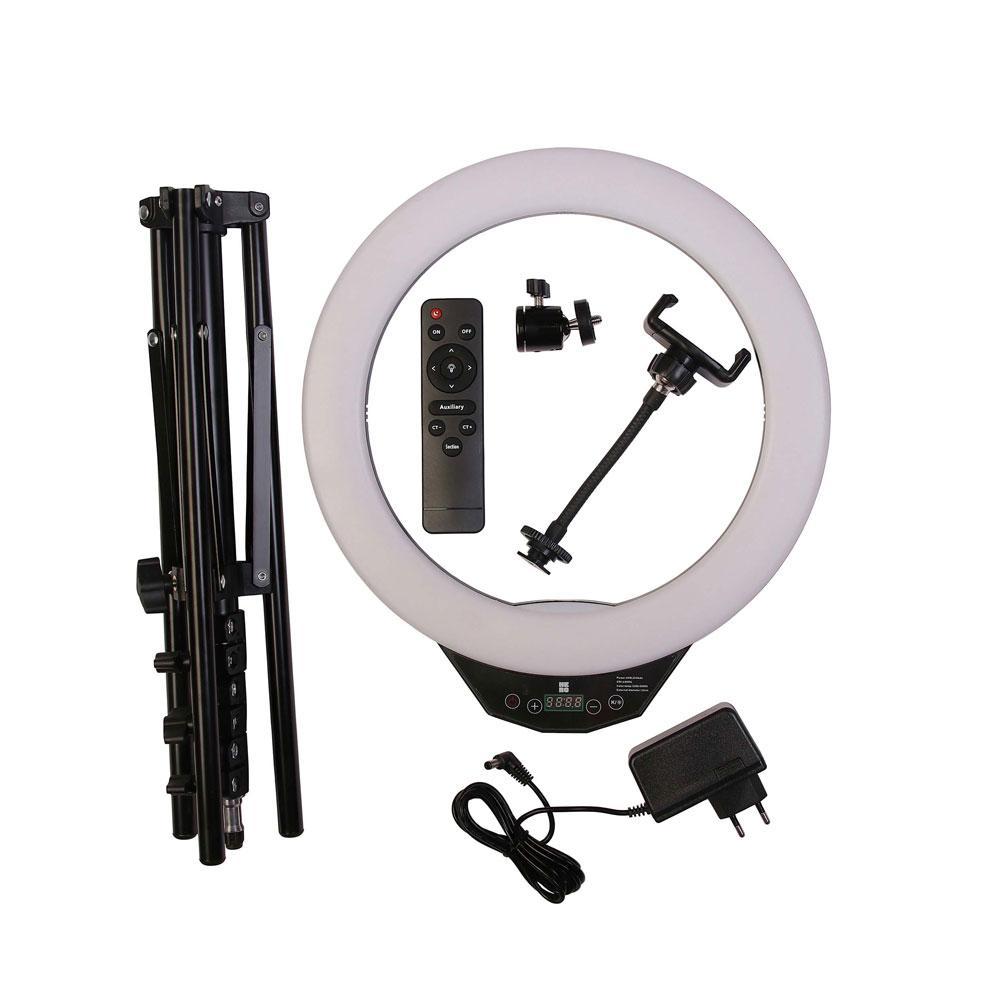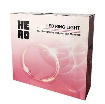 رینگ لایت هیرو 13 Hero در قطر 33 سانتیمتری به همراه 224 قطعه لامپ LED ارائه میگردد و این کالا در مکانهای متعددی اعم از آرایشگاه، سالن تتو و از همه مهمتر در آتلیه از کاربرد بسیاری برخوردار میباشد. فراموش نکنید که بر روی این دسته از رینگ لایتها یک نوع صفحه نمایشگر در جهت نمایش تنظیمات نوری تعبیه شده است و طبیعتاً این کالا از یک عدد سه پایه مخصوص برخوردار میباشد که در سهولت استفاده از آن، بی تاثیر نخواهد بود.