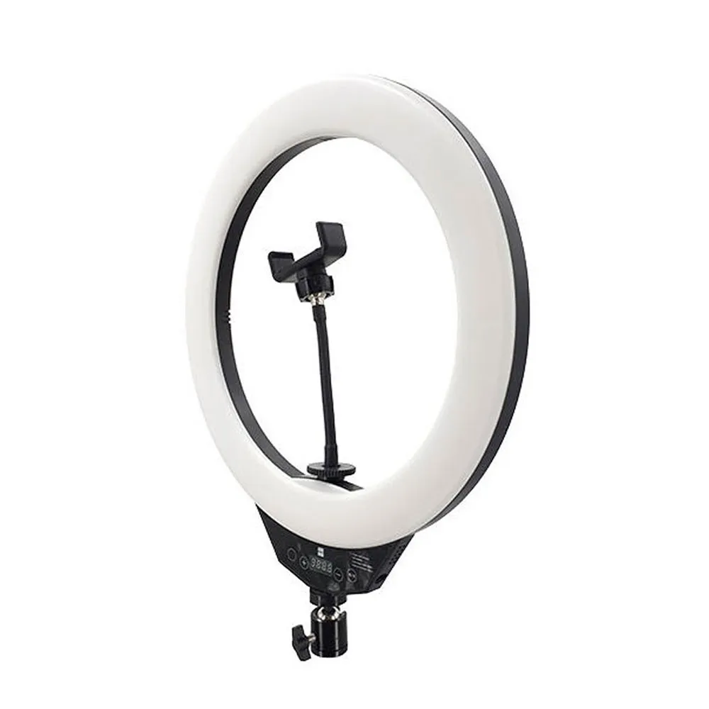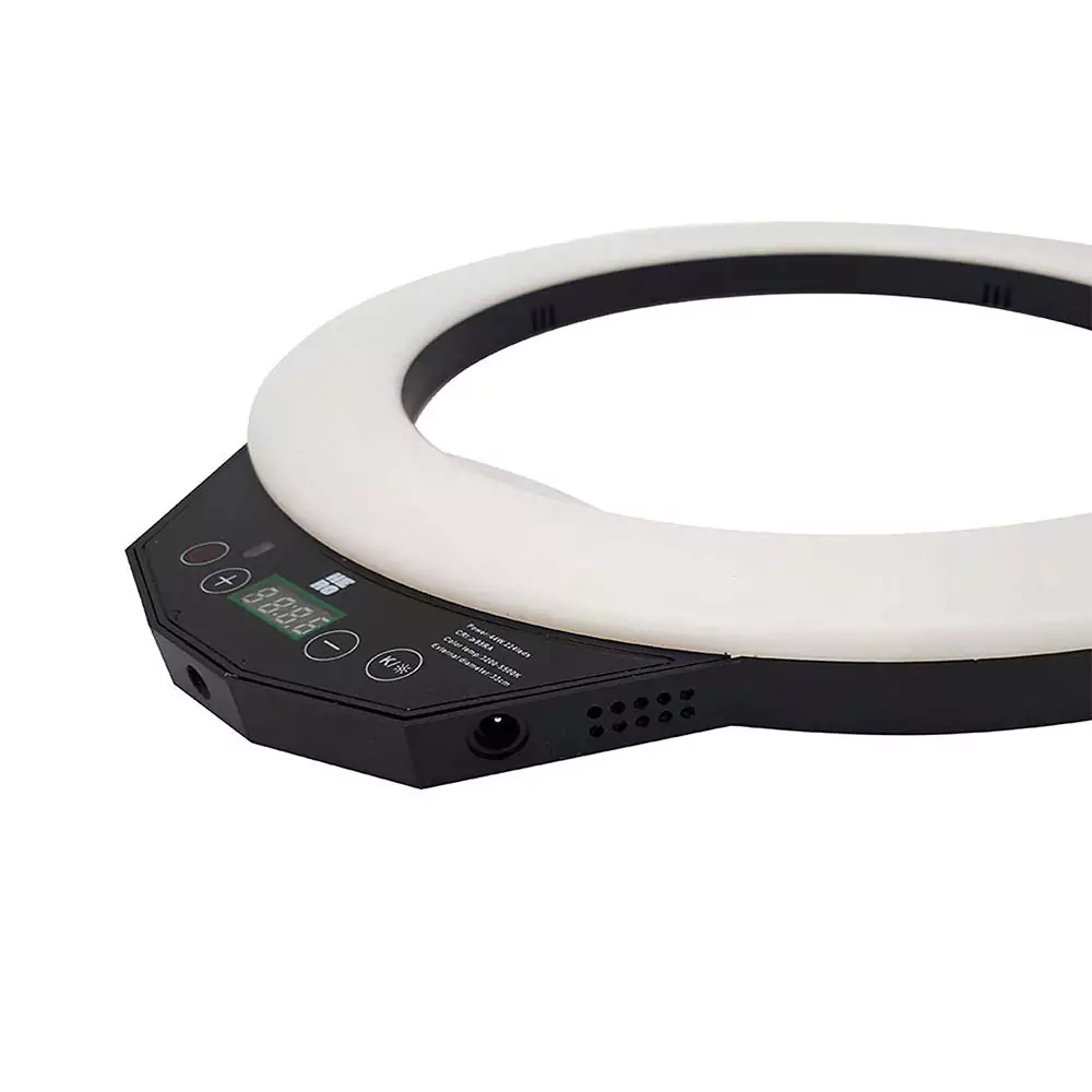 همچنین حتماً توجه داشته باشید که این رینگلایت پایه ندارد. بنابراین اگر قبلاً پایه مناسب در اختیار ندارید، تهیهی یک پایهی مستحکم را در لیست خریدتان قرار دهید. نکته مهم دیگر این است که کیفیت نور و دمای رنگ این رینگلایت بهگونهای تنظیم شده که به پوست آسیب نمیزند و برای استفاده طولانیمدت، مشکلی ایجاد نمیکند.