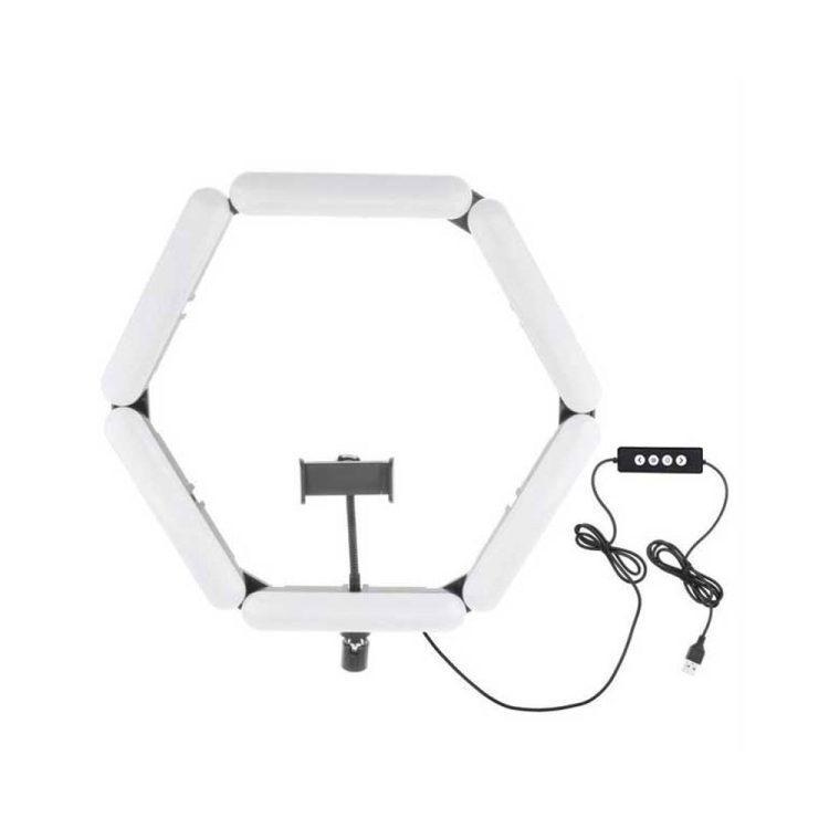 این رینگ لایت رو میتوانید به ۳ شیوه، نصب بر روی دیوار، به صورت رومیزی و یا با استفاده از ۳ پایه استفاده کنید. در ادامه به ویژگیهای دیگر این محصول اشاره کردیم. بنابراین اگر به خرید رینگ لایت شش ضلعی هیرو Hero V8 فکر میکنید، حتماً این متن را تا انتها بخوانید.