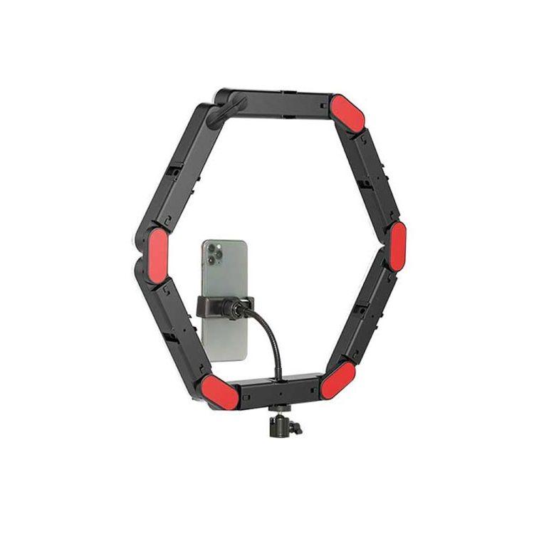 همچنین امکان نصب هلدر گوشی هوشمند بر روی تمامی بازوها وجود دارد. بنابراین شما میتوانید شکل ظاهری رینگ لایت را به هر شکل دلخواهی تبدیل کنید و گوشی را در هر قسمتی که دوست داشتید نصب کنید. این ویژگی حق انتخاب شما را برای هر جور نورپردازی و هر جور تصویربرداری در حد بالایی حفظ خواهد کرد.