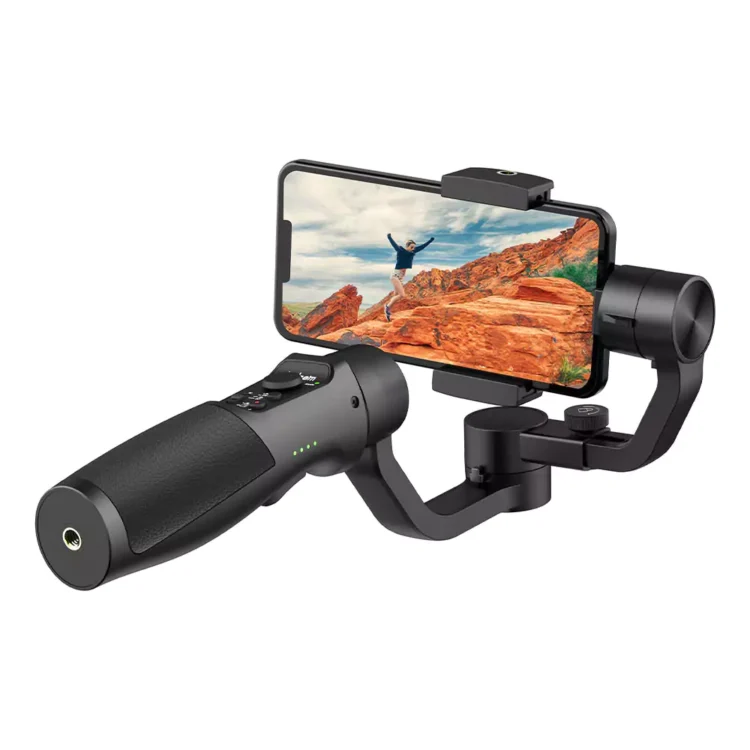 گیمبال iSteady Mobile Plus از نوع سه محوره است و میتواند حرکات گوشی شما را در سه جهت مختلف یعنی Roll، Tilt و Pan با دقت بالایی تثبیت کند. دامنه چرخش محور Pan تا 600 درجه، Tilt تا 320 درجه و Roll تا 320 درجه طراحی شده که به شما امکان حرکاتی کاملاً نرم و سینمایی را میدهد. کنترل این لرزشگیر از طریق یک جویاستیک چهارجهته صورت میگیرد که در کنار سوئیچ زوم، تجربهای دقیق و بیوقفه از فیلمبرداری را برای کاربر فراهم میسازد.