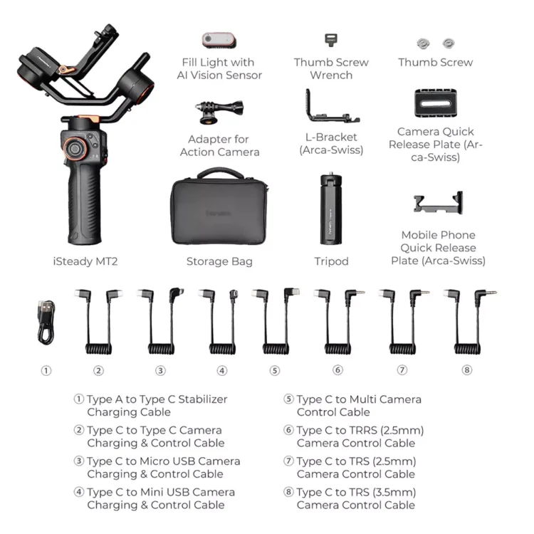 گیمبال Hohem iSteady MT2 Kit یک ابزار قدرتمند و هوشمند برای فیلمبرداران حرفهای و تولیدکنندگان محتوا است. این گیمبال با قابلیت NO APP AI Tracker، امکان دنبال کردن سوژه را بدون نیاز به اتصال بلوتوث یا اپلیکیشنهای جانبی فراهم میکند.