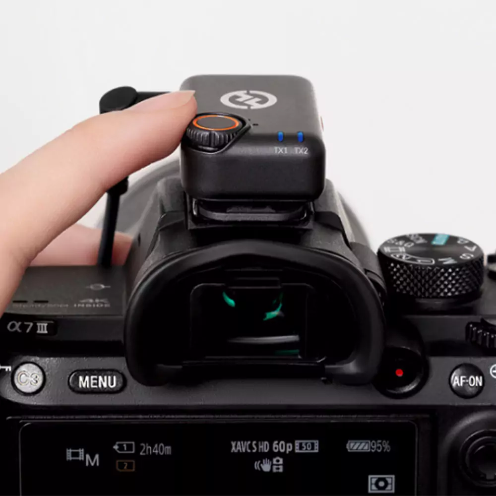 سیستم دو نفره: این میکروفون بهصورت کامبو (Combo) عرضه شده و قادر است تا دو میکروفون بیسیم را بهطور همزمان پشتیبانی کند. این ویژگی برای ضبط صدا در مصاحبهها، جلسات، و تولید محتواهایی که نیاز به ضبط صدا از چندین نفر دارند، بسیار کاربردی است.