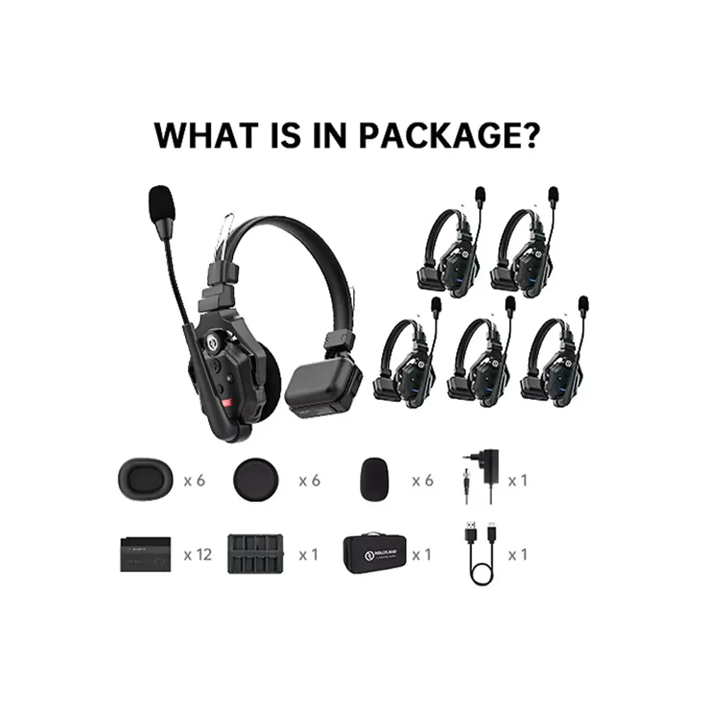 هدستها و میکروفون: این محصول همراه با 6 هدست و لوازم جانبی ارائه میشود که دارای بوم میکروفون چرخان 360 درجه هستند. این قابلیت به کاربران امکان میدهد تا میکروفون را به راحتی در جهات مختلف تنظیم کنند.