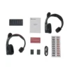 - شامل هدست های مستر و ریموت، شارژر باتری با 6 اسلات، 2 باتری، کابل USB به تایپسی و استیکر اعداد