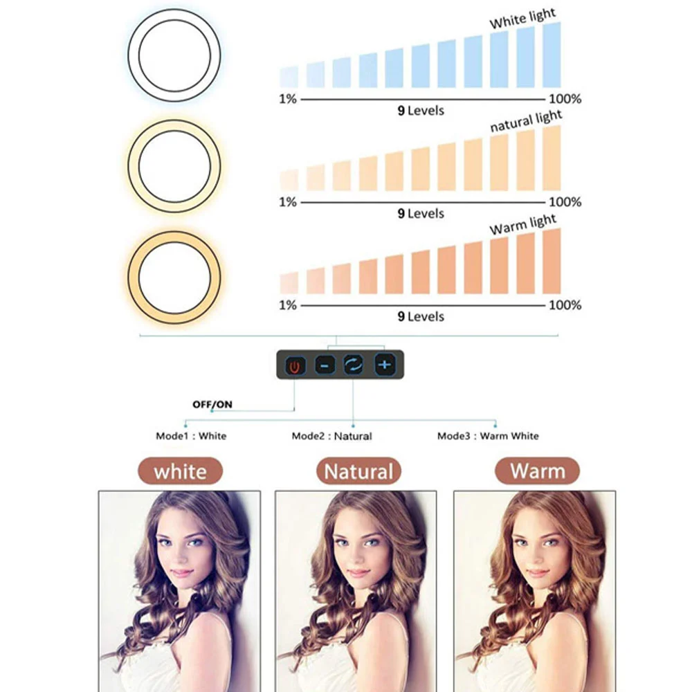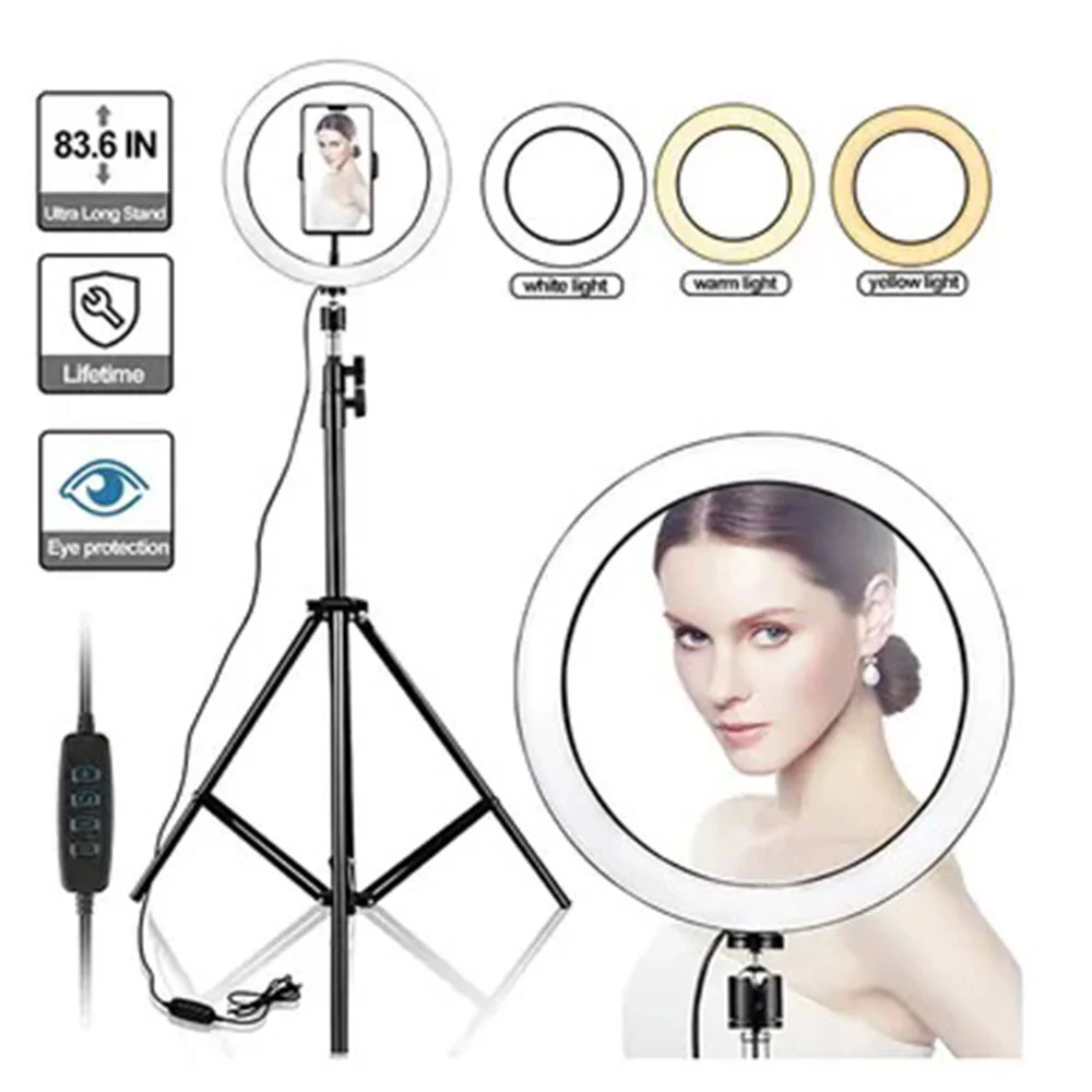 این محصول به یک ریموت سیمی مجهز است که از طریق آن میتوان حالتهای نوردهی را تغییر داد و شدت نور را تنظیم کرد. سه حالت نوردهی اصلی آن شامل نور گرم، سرد و ترکیبی از هر دو است. همچنین زاویه نوردهی 360 درجه، به شما این امکان را میدهد که جهت تابش نور را بسته به موقعیت خود تنظیم کنید. پایه همراه این رینگلایت نیز دارای قابلیت تنظیم ارتفاع از سطح زمین تا 220 سانتیمتر است و از اتصال 360 درجهای برای نصب رینگلایت بهره میبرد که حرکت آزادانه و تنظیم سریع را فراهم میکند.