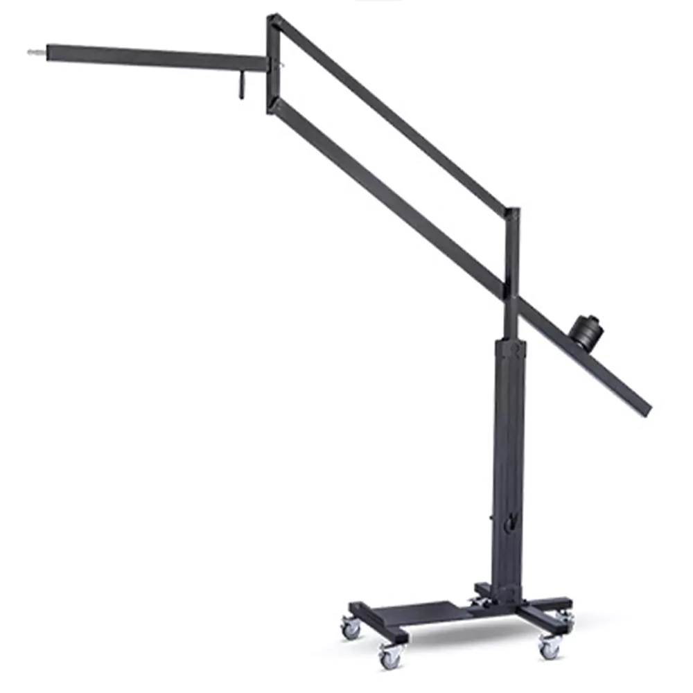 از جمله مزایای این پایه بوم، قابلیت تنظیم طول بازو و ارتفاع آن است که این امکان را برای کاربران فراهم میکند تا بتوانند به راحتی موقعیت تجهیزات مختلف خود را تنظیم کنند. این ویژگی، به ویژه در پروژههایی که نیاز به دقت و انعطافپذیری دارند، بسیار کاربردی است. طراحی چرخدار این پایه بوم هم باعث میشود که جابجایی آن به راحتی انجام شود و نیازی به حمل و نقل سنگین نداشته باشید. این ویژگی میتواند در استودیوهایی که نیاز به حرکت و تنظیم سریع تجهیزات دارند، بسیار مفید باشد.