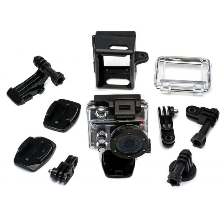 لوازم زیادی به همراه این دوربین اکشن در بسته بندی در اختیار شما قرار داده میشود که یکی از آنها، قالب ضدآب است. وقتی که دوربین را درون آن قرار میدهید، ابعاد دوربین به 72 × 77 × 51 میلیمتر میرسد و وزنش نیز، 190 گرم میشود.
