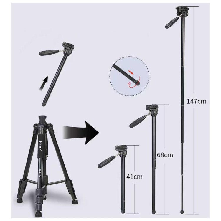 قابلیت تبدیل به مونوپاد: یکی از ویژگیهای بارز و منحصربهفرد سه پایه دوربین جیماری Jmary KP2274، قابلیت تبدیل آن به یک مونوپاد کارآمد و چندمنظوره است. این ویژگی خلاقانه، انعطافپذیری بینظیری را در اختیار کاربران قرار میدهد و امکان ثبت تصاویر و فیلمها از زوایای دشوار و متفاوت را فراهم میکند. چه برای عکاسی از ارتفاع، چه برای فیلمبرداری در فضاهای محدود یا حتی برای خلق کارهای هنری خلاقانه، مونوپاد این سه پایه، ابزاری قدرتمند و کاربردی خواهد بود.