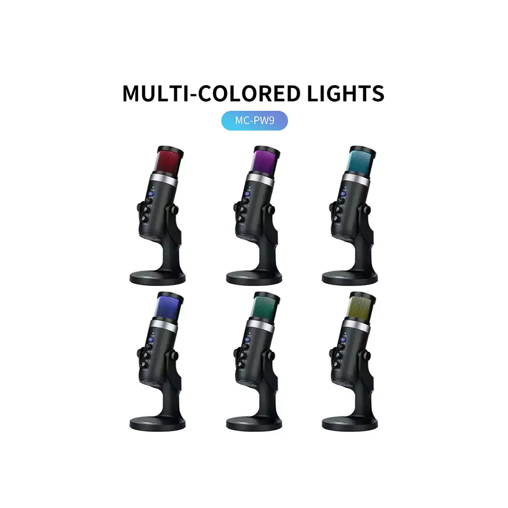 جیماری MC-PW9 از نظر طراحی بسیار مدرن و خیرهکننده است. این میکروفون دارای نورپردازی RGB با چندین حالت مختلف است که میتواند متناسب با فضای کاربر شخصیسازی شود. کیفیت ساخت بدنه از مواد مرغوب است که حس مقاوم بودن و دوام را به کاربر منتقل میکند. پایههای استند آن نیز به گونهای طراحی شدهاند که ثبات و استحکام مناسبی را در زمان استفاده فراهم میکنند.