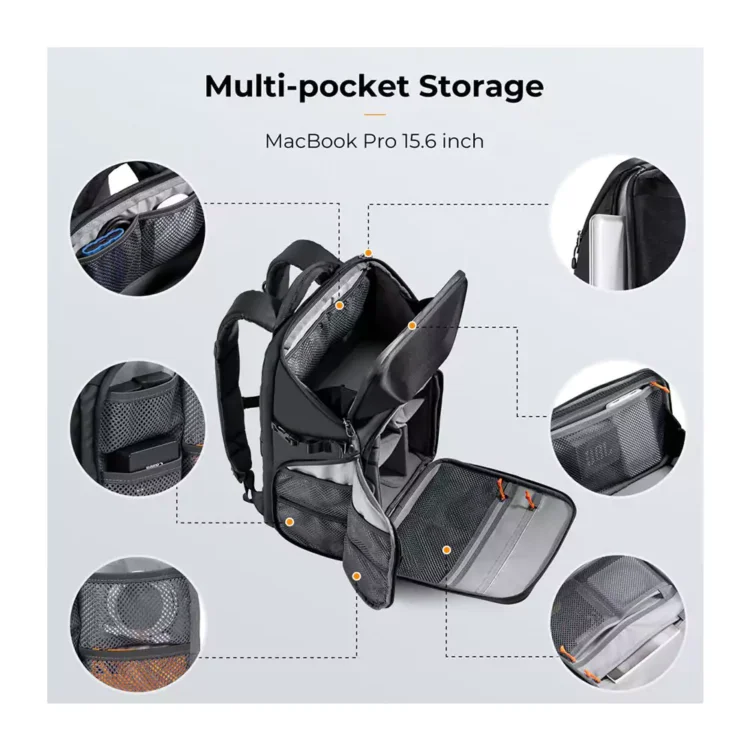 جیبهای متعدد: برای نگهداری کارتهای SD، کابلها و باتریها، تعداد زیادی جیب کاربردی تعبیه شده است.