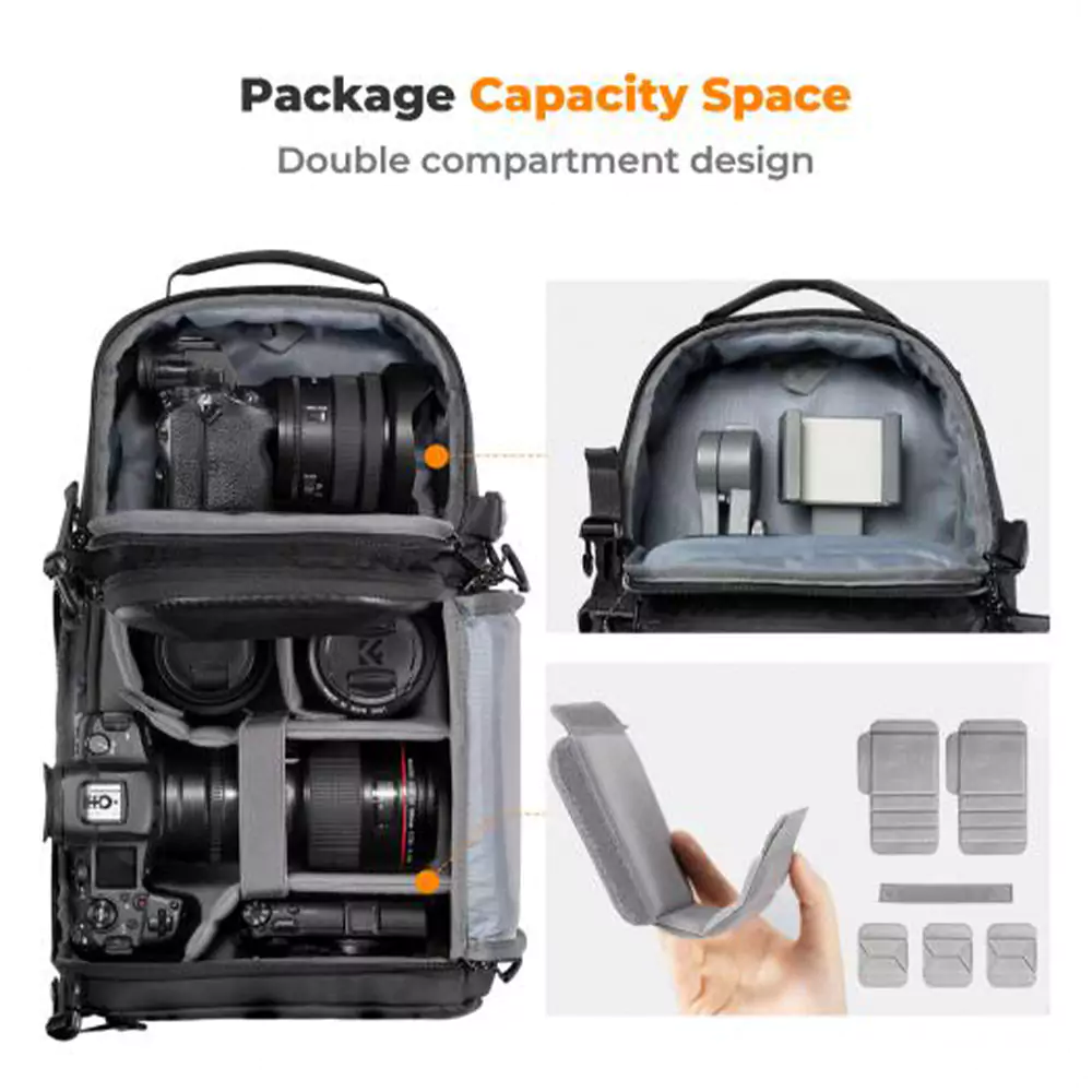 کوله پشتی کی اند اف K&F 13.176 یک انتخاب عالی برای عکاسان حرفهای است که به دنبال کیفی با طراحی منحصر به فرد و محافظت بالا برای حمل لوازم عکاسی و فیلمبرداری خود هستند. این کیف بهویژه برای دوربینهای DSLR و بدون آینه طراحی شده و ویژگیهایی مانند محافظت در برابر ضربه، بخشبندی هوشمند و دسترسی سریع به تجهیزات را ارائه میدهد.