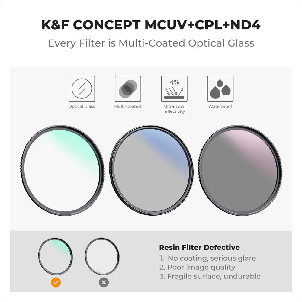 - K&F Concept از برندهای معتبر در زمینه تولید فیلترهای عکاسی و تجهیزات اپتیکی