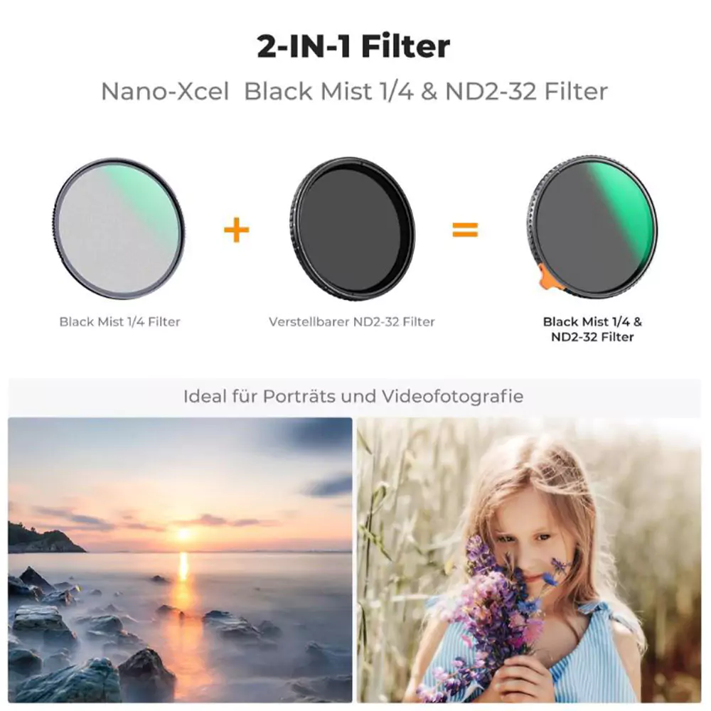 K&F Concept 77mm Black-Mist 1/4 & ND2- ND32 Multifunctional Filter