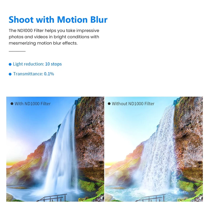 - فیلتر ND1000 با کاهش نور 10 استاپ (1000 برابر)