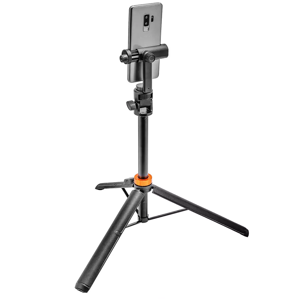 سهپایه Kingjoy M080 به راحتی از موبایل شما برای عکاسی و فیلمبرداری پشتیبانی میکند. طول این سهپایه در حالت بسته 33.5 سانتیمتر است و به راحتی در کیف شما جای میگیرد.