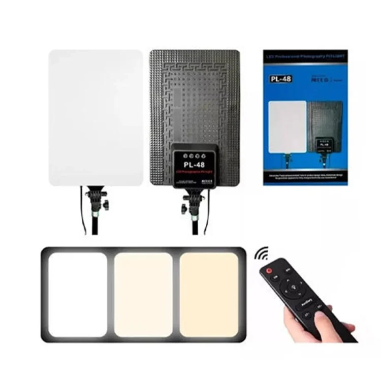 پنل سافت لایت LED PL‑48 با ابعاد 45×30×3.5 سانتیمتری و وزن 1.26 کیلوگرم برای جابهجایی و نصب در استودیو کاملاً مناسب است. با اتصال مستقیم به برق شهری، نگرانی شارژ ندارد و نور نرم و یکنواختی با زاویه 180° و دمای 3200‑5700 کلوین تولید میکند که بهسادگی با صحنه تطبیق مییابد. ریموت کنترل نیز تنظیمات را از راه دور راحت میسازد.