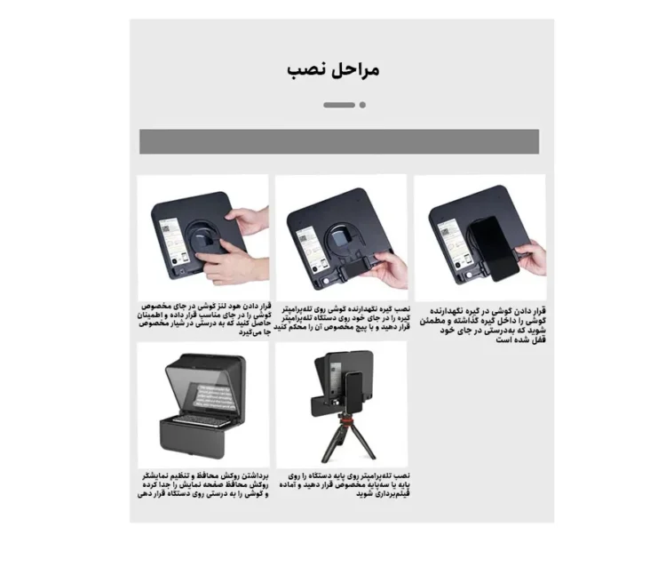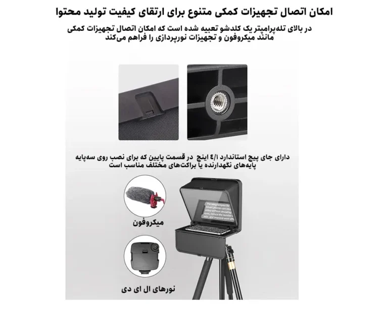 سازگاری با انواع دوربینها: تلهپرامپتر Autocue TC7s به راحتی با انواع دوربینهای حرفهای و حتی دوربینهای DSLR سازگار است. این امر باعث میشود که این محصول برای انواع پروژههای مختلف، از فیلمبرداریهای خبری تا تولید ویدیوهای تبلیغاتی، مناسب باشد.