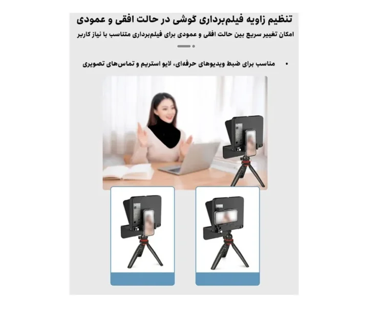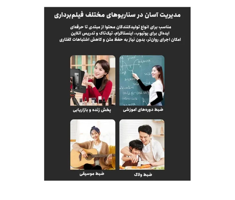 کنترل از راه دور: همراه محصول ریموت کنترل ارائه می شود تا بتوانید به راحتی سرعت اسکرول و نمایش متن را تنظیم کنید. این ویژگی مخصوصاً برای افرادی که در حال ضبط ویدیوی خود هستند و نیاز به تمرکز دارند، بسیار مفید است.