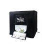 این خیمه نور 60 سانتیمتری، با منبع تغذیه 100 یا 220 ولت استفاده میکند. این محصول فقط 4.5 کیلوگرم وزن دارد و میتوان آن را با کمک یک کیف حمل کرد. عمر دو رشته لامپ LED آن در حدود 30000H و میزان روشنایی نورش 12000 تا 13000 لوکس است. میتوانید زاویه لامپ لایت باکس دیپ را تغییر داده یا انتخاب کنید که میخواهید از دریچه بالا عکاسی کنید یا از دریچه روبرو.