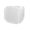 همه عکاسان در هنگام عکاسی از اشیای براق و یا گرفتن عکس از کالاهای تبلیغاتی به خاطر انعکاس ناهماهنگ نور از عکسی که می گیرند رضایت کافی ندارند. از این رو خیمه های عکاسی مختلف با قیمت های متفاوت روانه بازار شده است. خیمه عکاسی که ارایه شده است از جنس پارچه ای مقاوم در برابر حرارت لامپ مدلینگ و ضد آب است. ابعاد این خیمه نور ۶۰*۶۰ سانتی متر است. این خیمه عکاسی در حالت جمع شده دارای ابعادی کوچک و یک کیف برای حمل آسانتر است. با توجه به هزینهی کمی که بابت خرید این خیمه عکاسی می کنید می توانید یک استودیو با نور نرم و مناسب را خیلی زود و آسان نصب کنید. خیمه عکاسی فوق به شما کمک می کند که نور مناسب و دلخواه را برای گرفتن عکس از اشیای براق مثل طلا و جواهرات و کالاهای تبلیغاتی و صنعتی و سایر وسایل منعکس کنند نور داشته باشید. با استفاده از خیمه نور می تواند یک عکس ، با کیفیت ماکرو بگیرید. اگر برای گرفتن عکس از کالای مورد نظرتان به پس زمینه رنگی نیاز داشته باشید خیمه عکاسی به همراه خود چهار پارچه رنگی (سفید،مشکی،قرمز و آبی) دارد.
